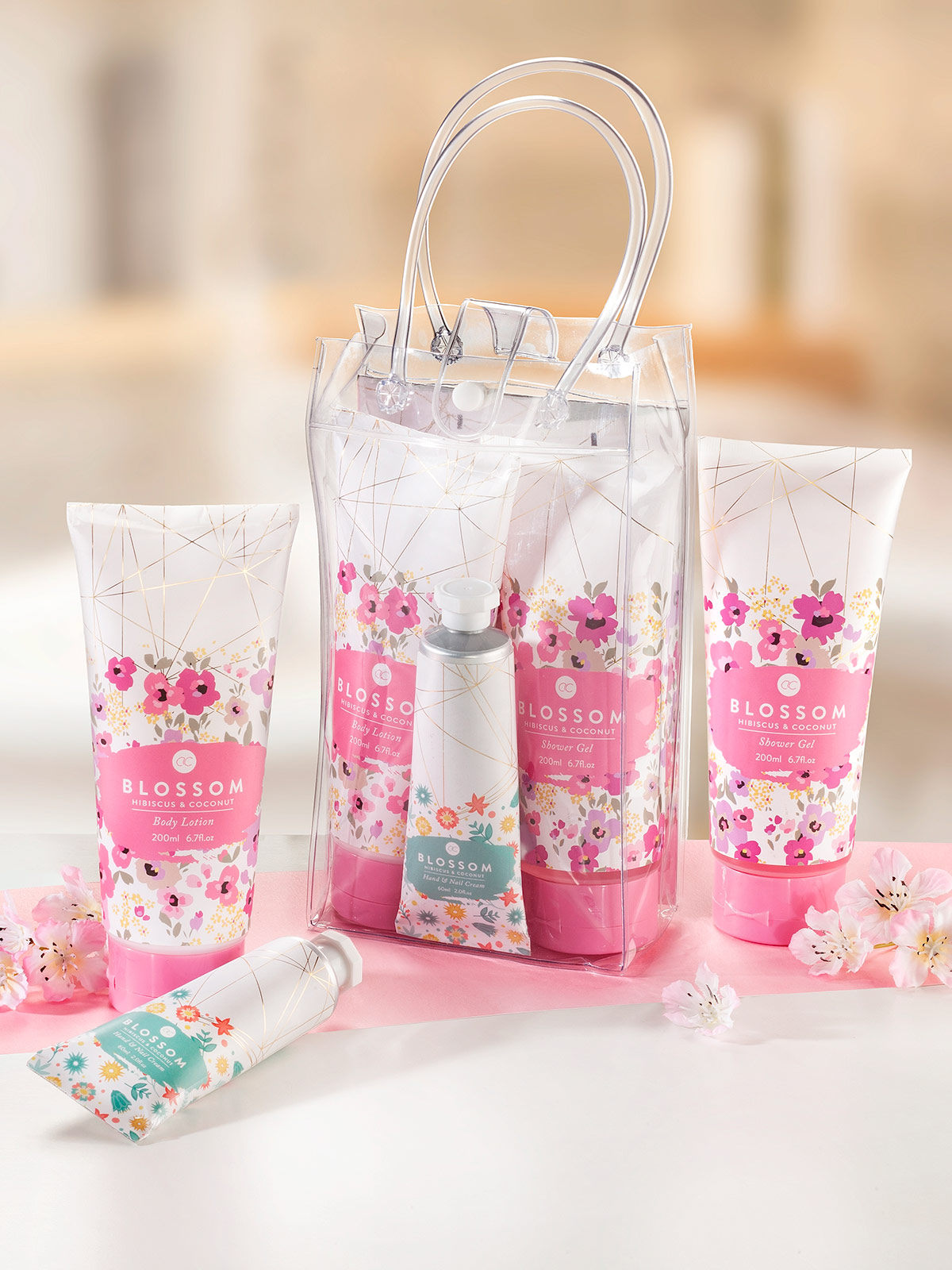Ein „duftes“ Geschenk für die frühlingsfrische Pflegestunde! Das Badeset beinhaltet 200 ml Duschgel und 200 ml Body Lotion in der Duftrichtung „Hibiscus & Kokos“. Dazu erhalten Sie eine 60-ml-Tube wohlriechende Hand- und Nagelcreme mit blumigem Duft. Dekorativ in einer Klarsichttasche mit Verschluss verpackt. Ca. 18 x 16 cm.