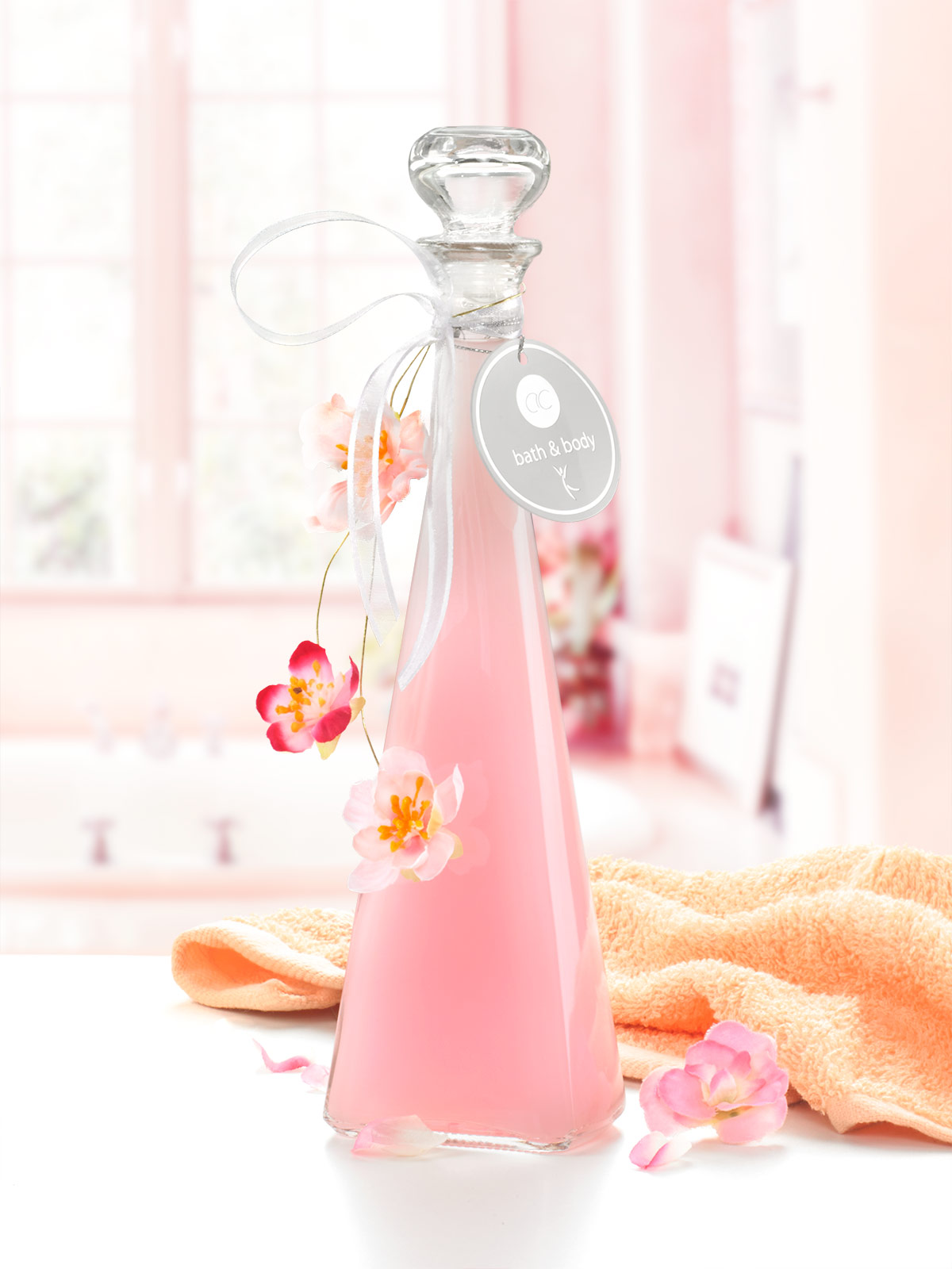 Nicht nur ein schönes Schmuckstück im Bad, sondern auch ein edles Geschenk für die Freundin. Baden in einem Hauch von herrlicher Rose mit sanfter Rezeptur für eine Extraportion Pflege. Mit einem kleinen Blütenanhänger, Schleife und Geschenkanhänger dekoriert. Höhe: ca. 25 cm. 200-ml-Glasflakon.