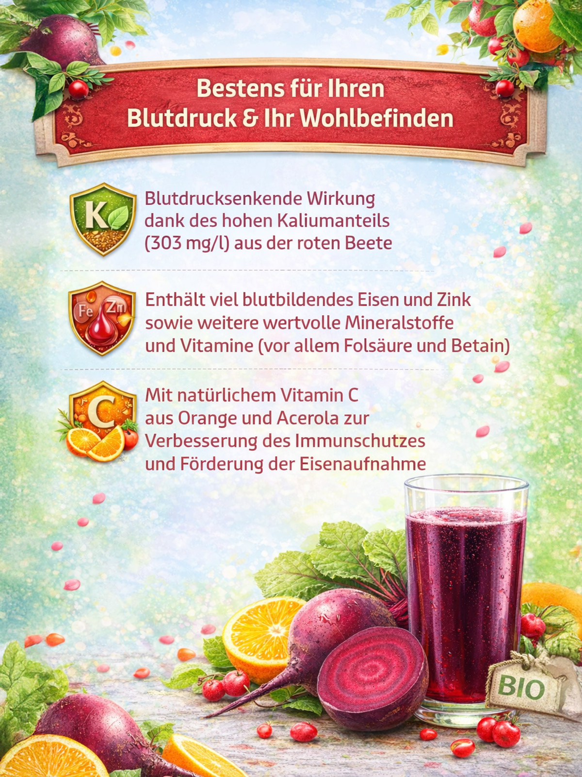 Aus 46 wertvollen Inhaltsstoffen zur täglichen Optimierung Ihrer Ernährung. Stärken Sie sich Tag für Tag mit vielen Mikronährstoffen aus natürlichen Obst,- Gemüse- und Kräuterextrakten sowie wichtigen Vitaminen und schenken Sie sich damit das gute Gefühl, einen Lebensstil zu pflegen, der jung und fit hält! Die reinen Bio-Nährstoffe arbeiten nach dem Vorbild der Natur Hand in Hand, denn sie benötigen und ergänzen sich oftmals gegenseitig. Von Ernährungsexperten entwickelt zur Unterstützung einer bewussten Lebensweise. Tägliche Verzehrempfehlung: 2 Esslöffel (30 ml) mit Wasser oder Saft verrühren. 200 ml.  • Unterstützt eine normale Funktion des Immunsystems • Verringert Müdigkeit und Ermüdung • Trägt zu einer normalen geistigen Funktion bei • Hilft, die Zellen vor oxidativem Stress zu schützen • Unterstützt eine normale Kollagenbildung • Trägt zum Erhalt normaler Haut, Haaren und Nägel bei