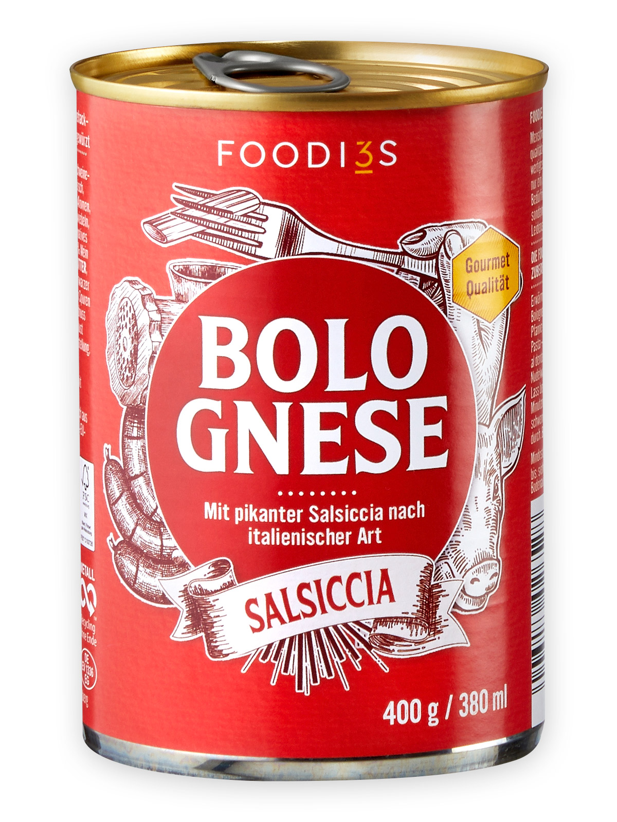 Mit saftigem Schweinehackfleisch, gewürzt nach Salsiccia-Art! Wenn mal keine Zeit ist, eine originale Bolognese-Sauce über Stunden auf dem Herd köcheln zu lassen: Genießen Sie einfach diese Gourmet-Variante mit den typischen Gewürzen der italienischen Salsiccia-Wurst! Verfeinert mit Wein. 400-g-Dose.