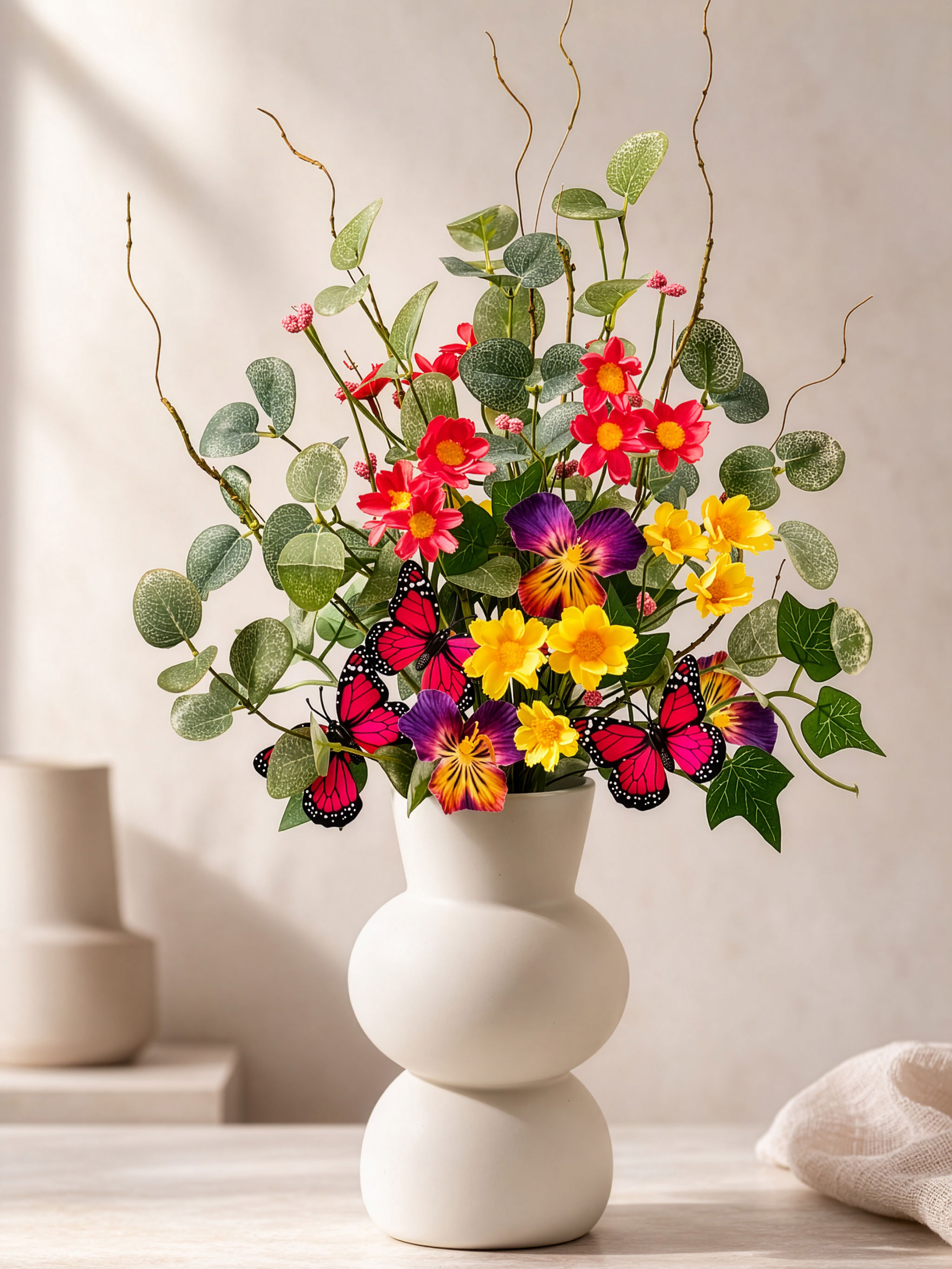 Frühlingszweig & Blumensamen! Frühlingszweig für die Vase mit biegsamen Zweigen und bunten Blüten sowie einem zauberhaften Schmetterling für das ultimative Frühlingsgefühl. Material: Kunststoff, Polyester. Gesamthöhe ca. 30 cm hoch. Blumensamen für die Aussaat wunderschöner, bienenfreundlicher Sommerblumen im Balkonkasten oder Garten.