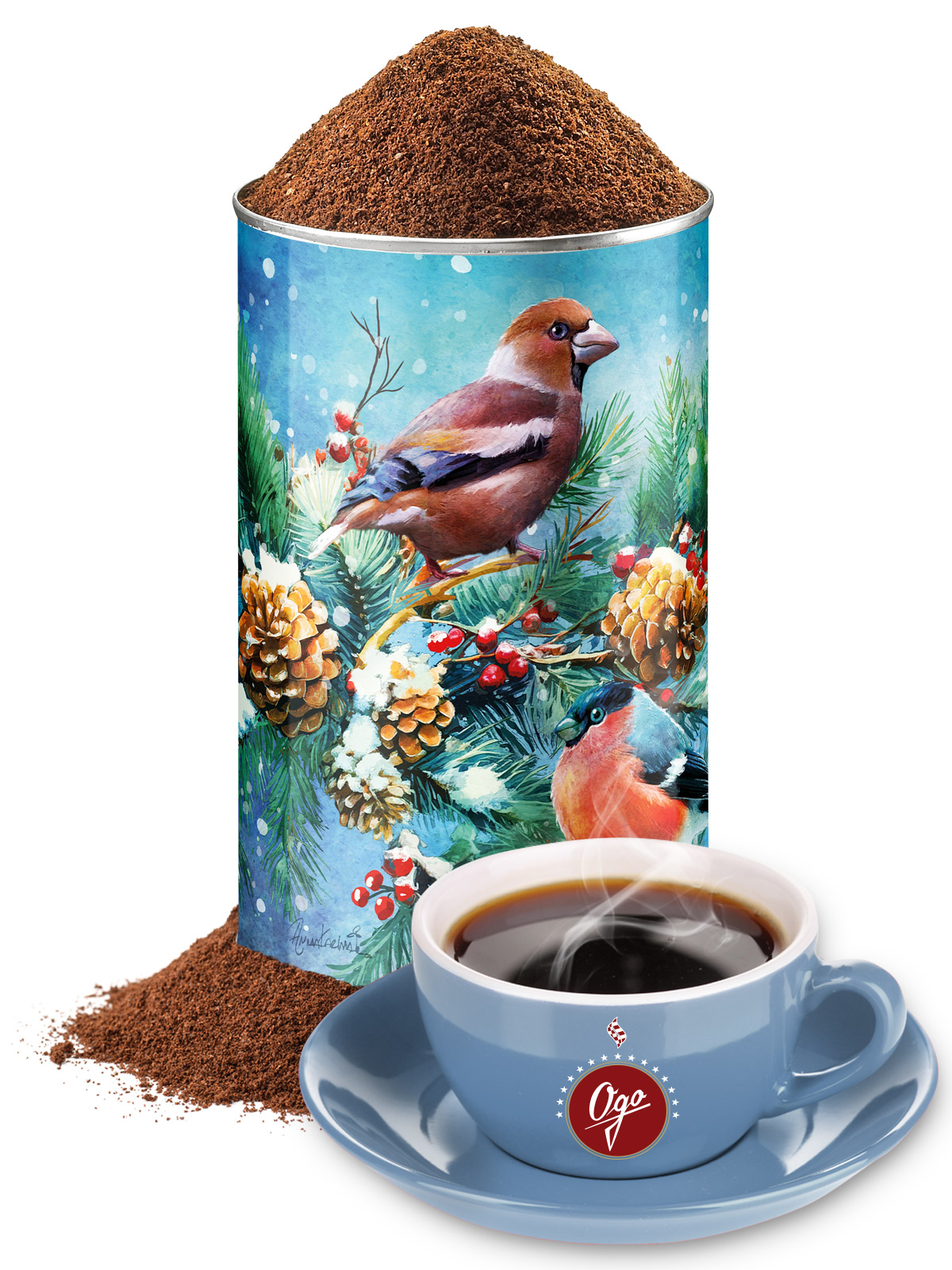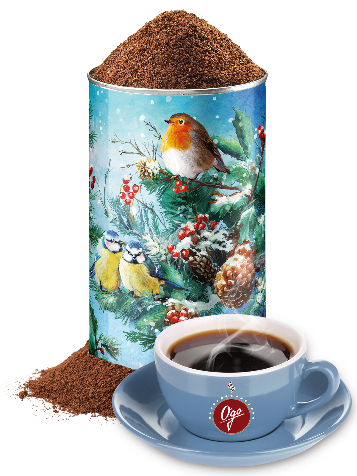 Limitierte Künstlerdose mit Eulen- und Eichhörnchen-Motiv zum Sammeln & Genießen! Die meisterliche Röstung der hochfeinen Arabica-Bohnen macht den Festkaffee von Ogo zu einem Hochgenuss. Freuen Sie sich auf Festkaffee, gemahlen, in der exklusiven Sammlerdose mit wunderschönen Eulen- und Eichhörnchen-Pärchen als Motiv. Nicht im Rahmen eines GOLD-Abos nutzbar. 2 x 250-g-Dose + 1 x 250-g-Dose GRATIS.Passend dazu:Becher „Waldgeflüster“