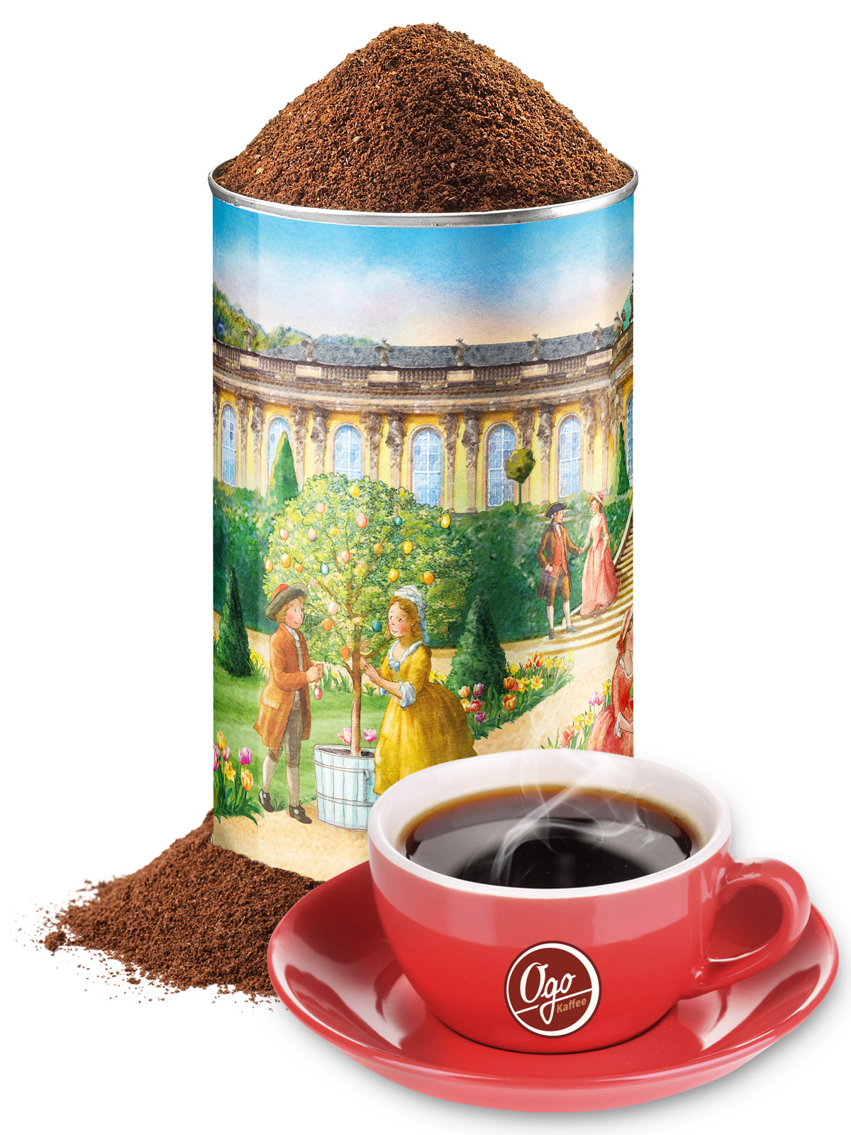 Unser mild-aromatischer und schonend entkoffeinierter Arabica-Kaffee. Genießen Sie jederzeit den unnachahmlichen Geschmack unseres Ogo-Kaffees. 250-g-Künstlerdose.