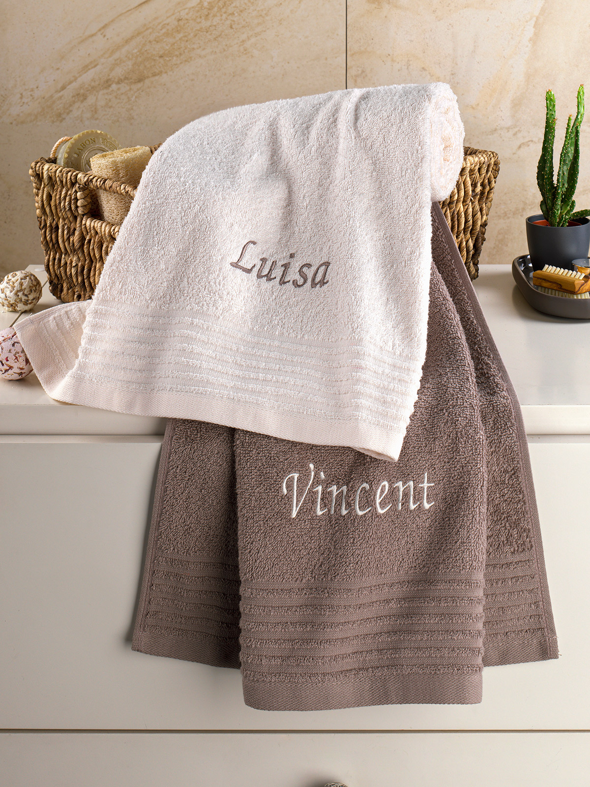 Persönlich schenken mit eingesticktem Namen! Eine wunderbare Geschenkidee: Das hochwertige, flauschige Walkfrottier-Handtuch aus 100% Baumwolle in Creme und in Taupe mit dem wunderschön geschwungenen Namenszug aus bis zu 15 Buchstaben (Sonderzeichen und Emojis nicht möglich/bestickte Artikel sind vom Umtausch- und Rückgaberecht ausgeschlossen). Waschbar bis 60 °C. Höhe gestickter Name: ca. 3 cm. Ca. 50 x 100 cm.