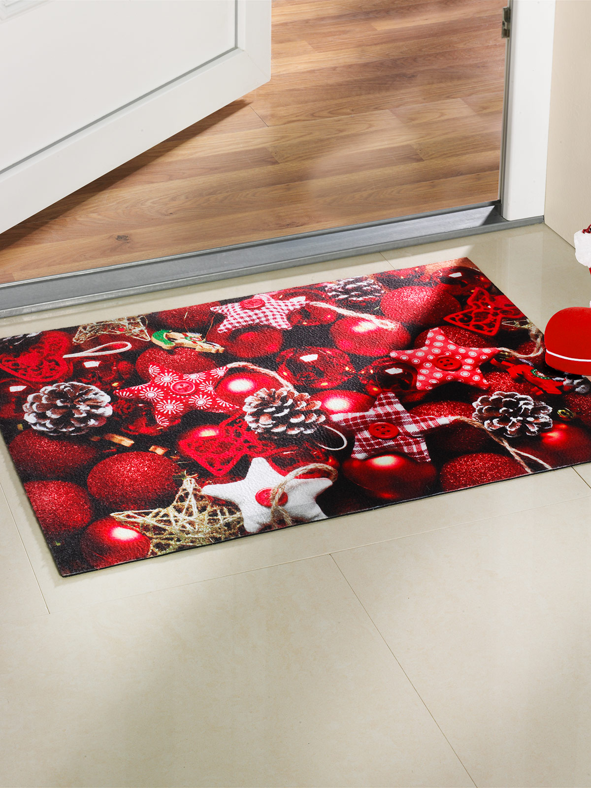 Exklusiv-Dessin bei Jungborn! Schmutzfangmatten bestimmen das Bild des Eingangsbereichs eines Hauses ganz entscheidend mit. Diese Matte mit bezauberndem Weihnachtsdeko-Motiv und aufgedrucktem 3-D-Rand erweckt den Eindruck, dass die Matte höher scheint, als sie mit ihrer Gesamthöhe ist. Der kräftige Unterboden schirmt Feuchtigkeit ab. Wellt und verrutscht nicht – Ihre Türen schließen reibungslos. Mit rutschfester Gummi-Rückseite und robustem Material für guten Halt. Nicht waschmaschinengeeignet. Ca. 68 x 45 cm.
