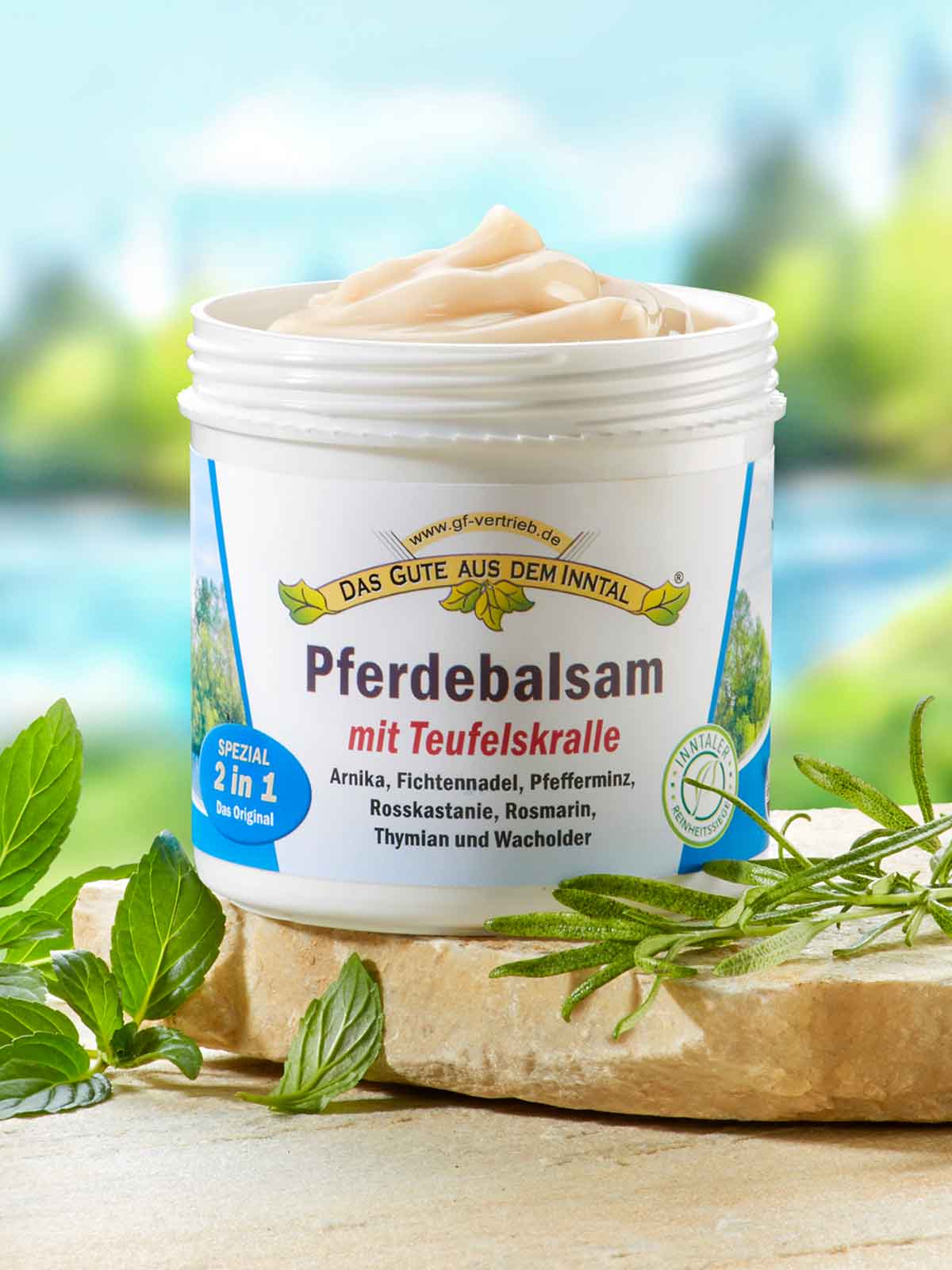 Pferdebalsam in der Sonderedition mit Zirbensäckchen! Pferdebalsam: Altbewährt für Nacken & Schulter, Rücken, Arme & Beine, Wirbelsäule, Hüfte & Sehnen. Verbesserte Formel mit Teufelskralle. Im 200-ml-Tiegel. Zirbensäckchen: Das Baumwoll-Duftsackerl mit 100% Zirbenflocken aus dem Zillertal – mit harmonisierender Wirkung für erholsamen Schlaf. H/B: ca. 17 x 9 cm.