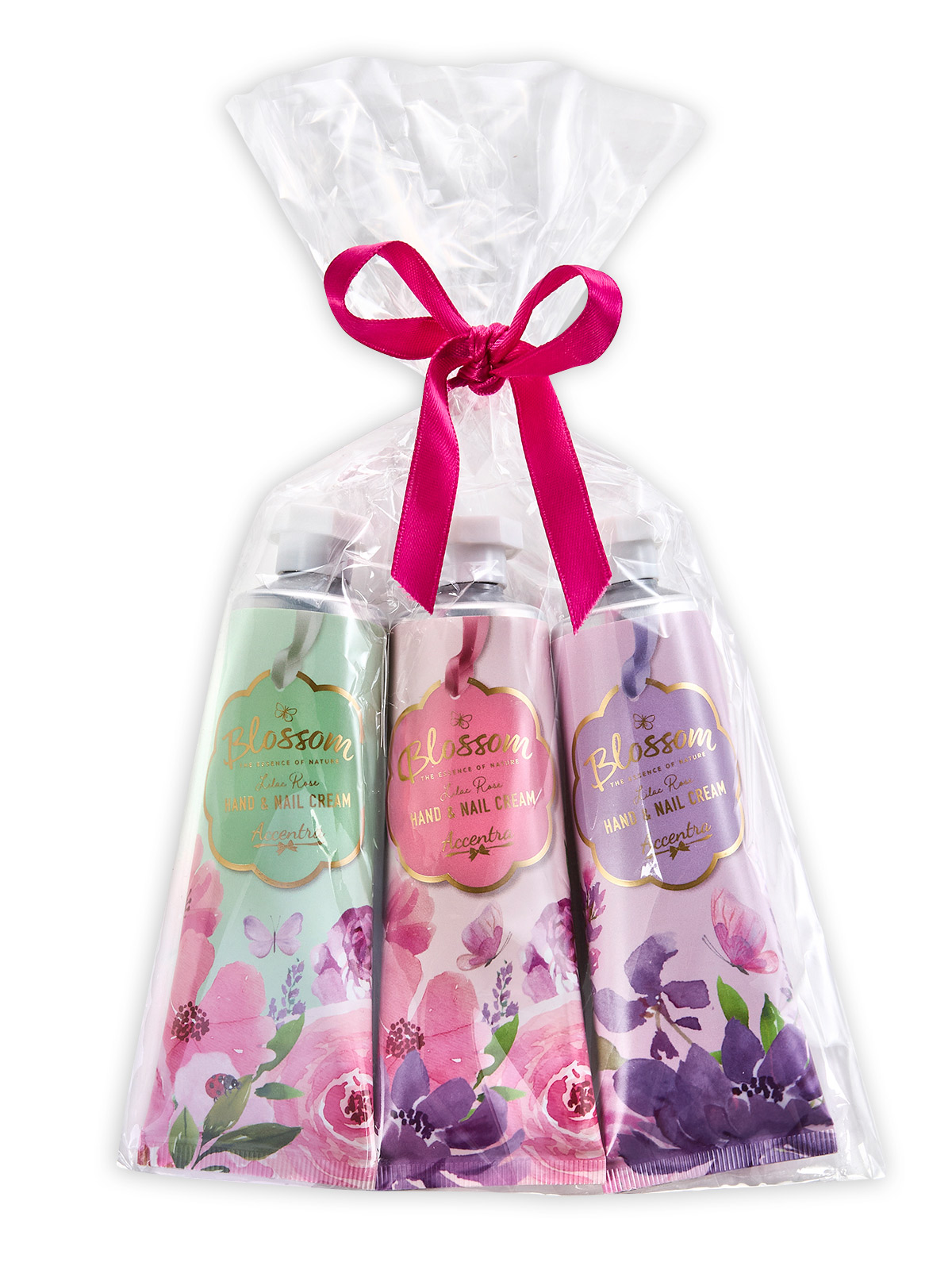 Handcreme & Gästeseife! Gepflegte Hände dank dieser nach Flieder und Rosen duftende Hand- & Nagelcreme-Trio. Ideal auch für die Handtasche. 3 Tuben à 60 ml. Dazu: die Gästeseife in Schmetterlingsform als liebevoll verpacktes Präsent. Duft: Kirsche. 28 g.