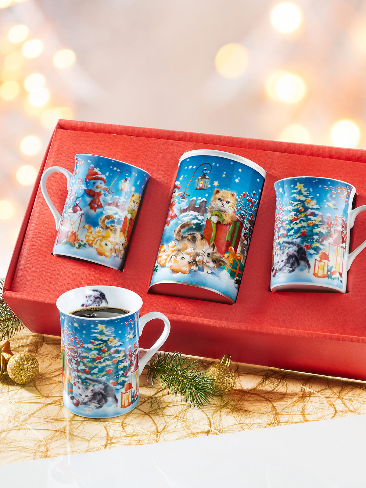 Exklusiv nur bei Jungborn! Zu unserem allseits beliebten, gemahlenen Ogo „Festkaffee“ in der 250-g-Sammler-Schmuckdose mit zauberhaft gestaltetem Winterkätzchen-Motiv gibt es die passenden 2 Porzellan-Kaffeebecher (Höhe: ca. 10 cm) gleich dazu! Limitierte Auflage – am besten gleich bestellen und als herzliche Grüße an einen Kaffee-Liebhaber verschenken! Repräsentativ und liebevoll im Geschenk-Karton verpackt. Ca. 36 x 20 cm. Dieses Sonderangebot ist nicht im Rahmen eines Kaffee-Flex-Abos nutzbar.