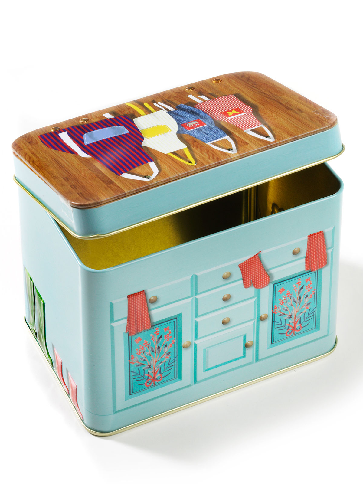 Ein ganz besonders schönes Dekostück im schicken Retrolook für Ihre Küche! Egal ob Kaffee, Tee, Bonbons, Kekse oder Blumensamen – Dieser bezaubernden „Buffet-Dose“ mit Aufstelldeckel sind keine Grenzen der Verwendungsmöglichkeit gesetzt! Fassungsvermögen: ca. 1.200 ml. Material: Metall. Ca. 14 x 10 x 11 cm.