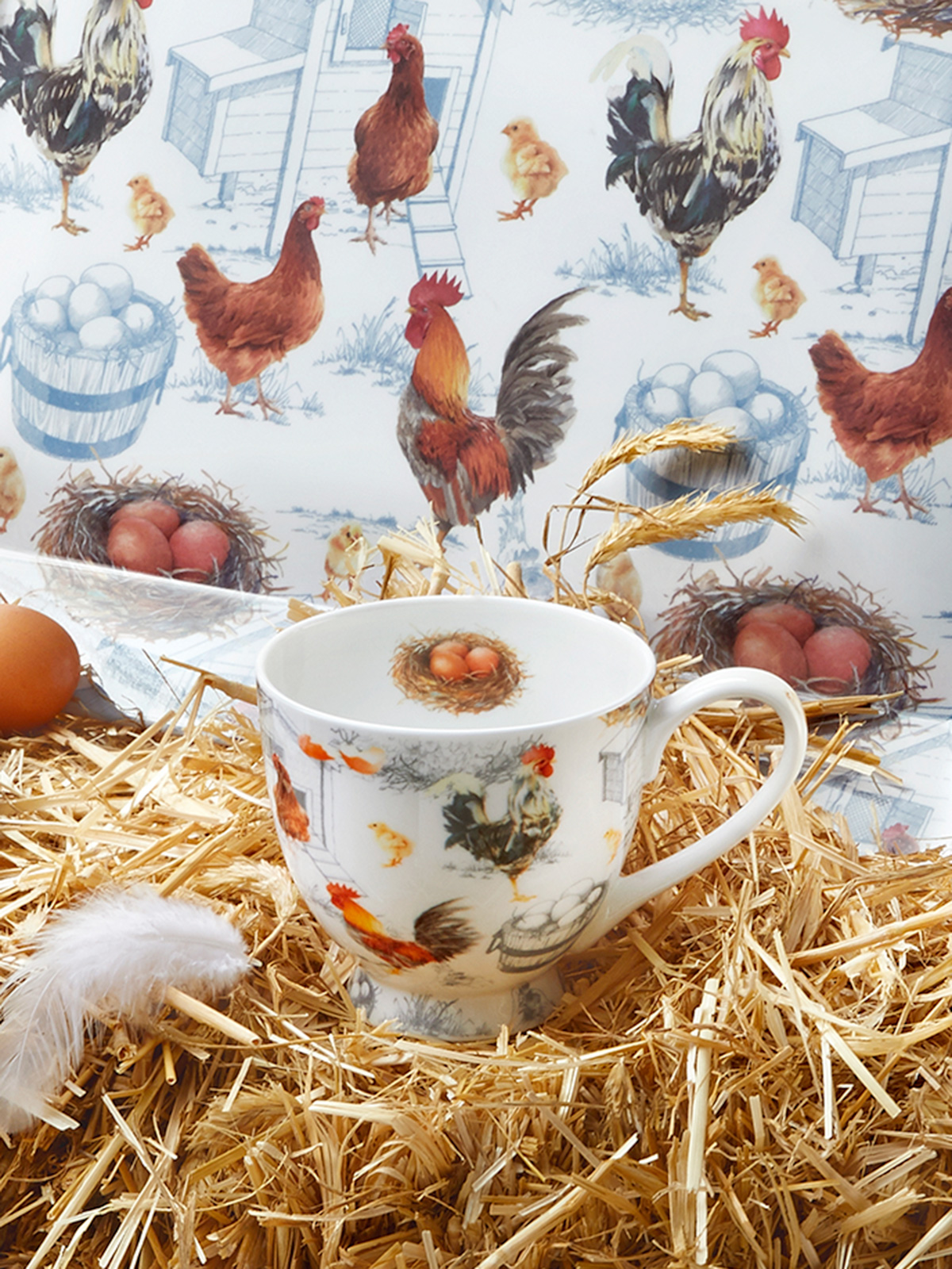 Der neue Lieblings-Becher schmiegt sich wunderbar in beide Hände! Mit stimmungsvollem Hühnerfarm-Motiv und Innendruck. Ideal geeignet für Heißgetränke. Fassungsvermögen: 500 ml. Material: Fine Bone China Porzellan. Mikrowellen- und spülmaschinengeeignet. Höhe: ca. 10 cm.