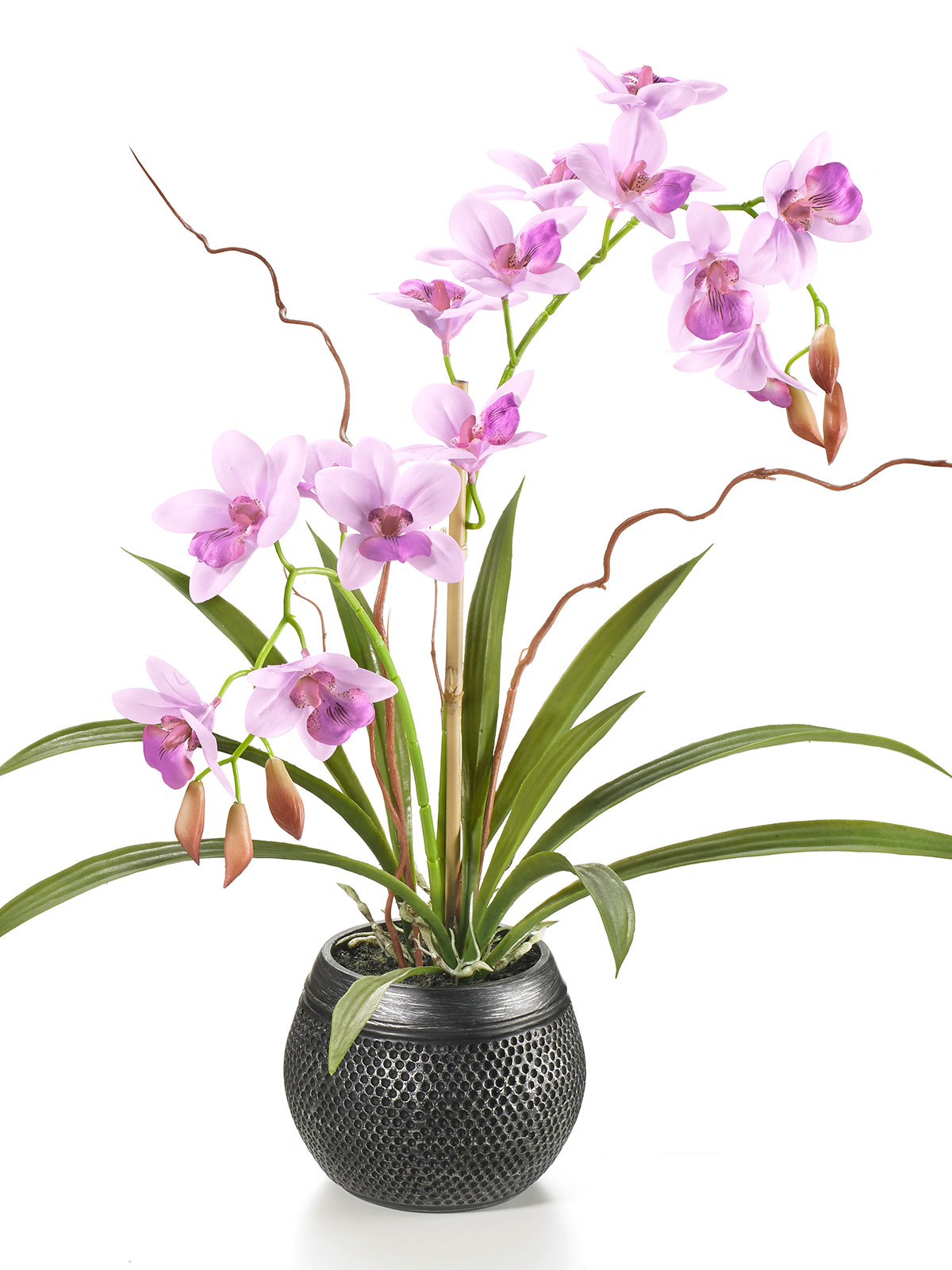 Falls Sie für gewöhnlich keinen grünen Daumen haben, dann beschert Ihnen diese exotische Orchidee garantiert nachhaltige Erfolgserlebnisse und verschönert mit ihrem asiatisch anmutenden Zauber Ihr Zuhause! Immer blühend und pflegeleicht – greifen Sie gleich zu. Material: Polyester, Kunststoff, Topf aus Keramik. Höhe: ca. 50 cm.
