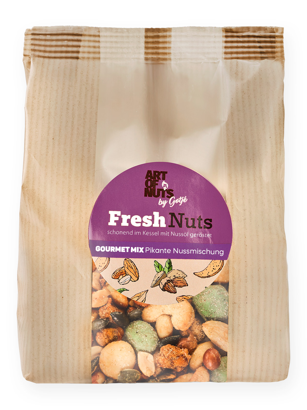Erdnüsse, Kürbiskerne, Cashewnüsse, Mandeln, Macadamia, Pecannüsse, Weizenmehl, Stärke (Kartoffel, Mais), natürliche Aromastoffe, Aroma (Rauch, Milch, Senf),Maltodextrin, Backtriebmittel (E500, E500ii, E503ii), Trennmittel (E551), Antioxidationsmittel (E306, E330, E392), Farbstoff (E141, E150c, E160c), Verdickungsmittel (E414), Zucker, Soja, Koji, Hefe (Pulver, Extrakt), Wasabi, Salz, pflanzliches Öl (Erdnuss, Sonnenblume, Kokosnuss, Raps, Palm RSPO), Paniermehl (Weizenmehl, Calciumcarbonat, Eisen, Niacin, Thiamin), Laktose (Milch), Gewürzextrakt (Chili, Paprika, Knoblauch, Kurkuma, Paprika).