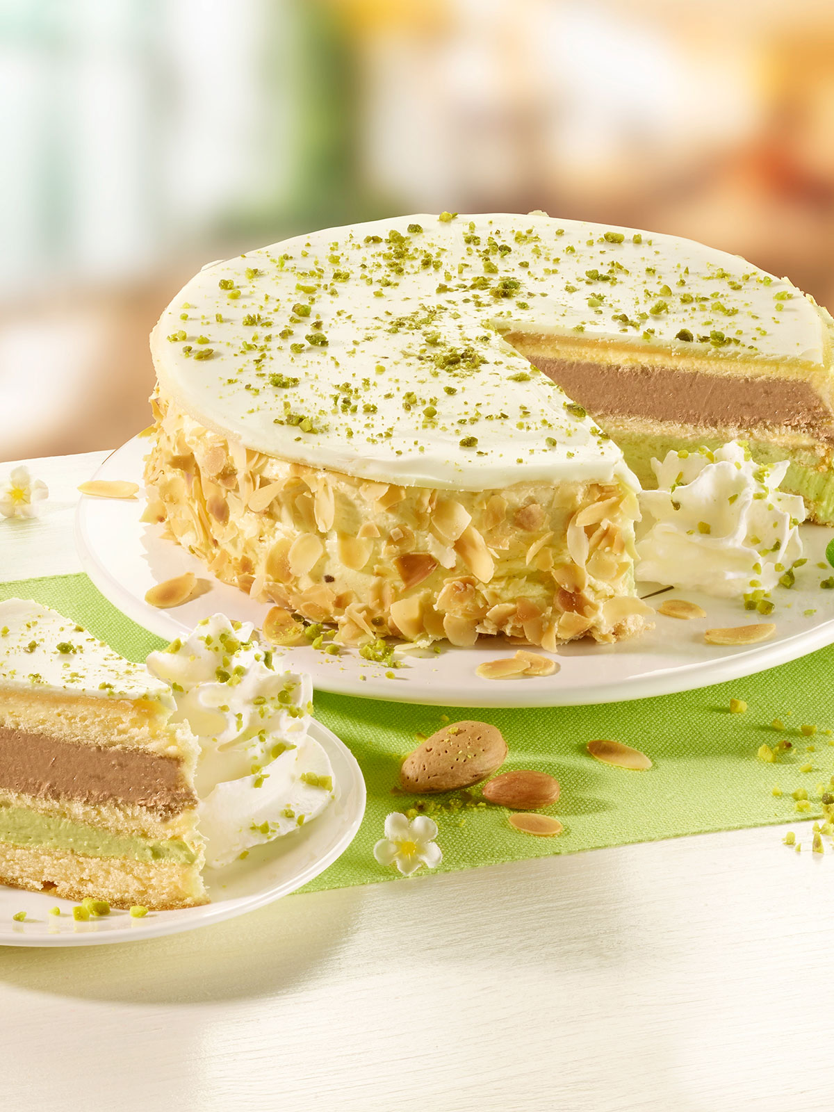 Vollmilchpulver, Sonnenblumenöl, Butterfett, Pistazien 2%, Feuchthaltemittel (E420; E1103), Invertzuckersirup, Magermilchpulver, Trockenglucosesirup, pflanzliches Öl (Shea; Raps; Soja; Palm teilweise gehärtet), Tresterbranntwein (Marc de Champagne), Salz, Ethylalkohol, Orangensaftkonzentrat, Kakaomasse, Propylenglycol, Haselnussmark, Verdickungsmittel (E401; E407), Stabilisator (E339), Milcheiweiß, Karottenextrakt, Vanilleschotenpulver, natürliches Bourbon-Vanillearoma, Kakaobutter, Emulgator (E472a; E322; E471), Farbstoff (E141), Aromaextrakte, Kakao mager, Stabilisator (E420), natürliches Orangenaroma, Säuerungsmittel (E450), Maisstärke.