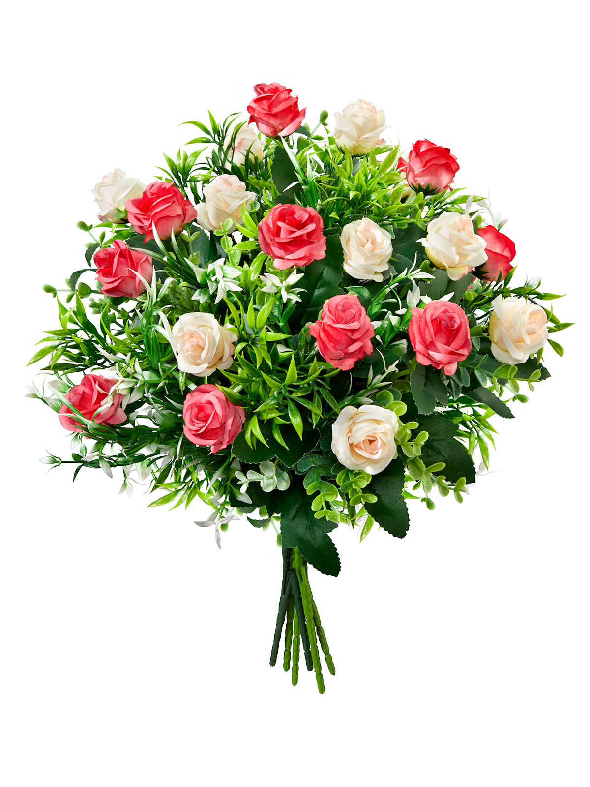 Für drinnen & draußen! Ein Blütentraum, der nie verwelkt: Beleben Sie Ihre (Tisch-)Deko mit diesem naturnah gestalteten Strauß aus wunderschönen Rosen und leuchtendem Grün. Material: Textil- und Kunststoff. Geschenkpapier & Schleife nur Dekobeispiel (wird nicht mitgeliefert). Höhe: ca. 35 cm.