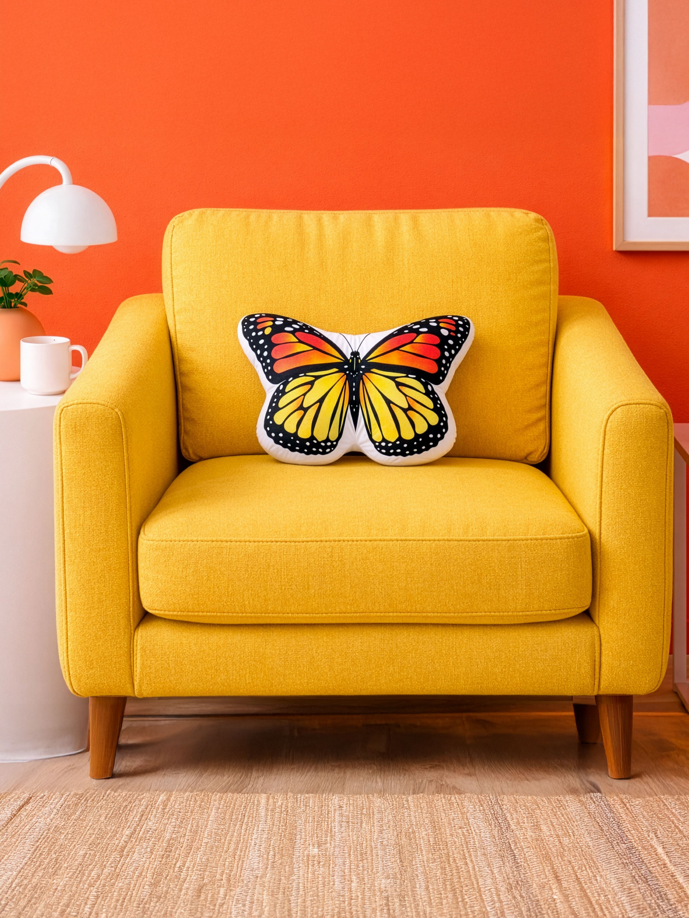 Verleiht Ihrem Ambiente „Flügel“! Kuscheliges Kissen in Schmetterlingsform mit leuchtenden Farben. Material: 100 % Polyester. Waschbar bis 30 °C. H/B/T: ca. 24 x 33 x 9 cm.