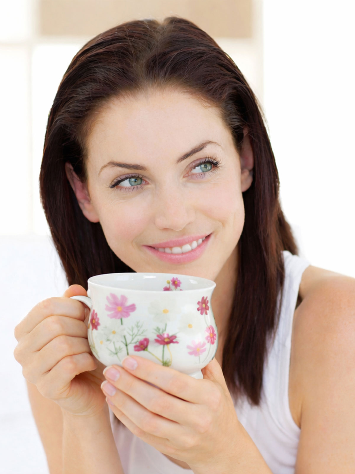 2-teilig: Becher & Stövchen im bezaubernden Cosmea-Dessin