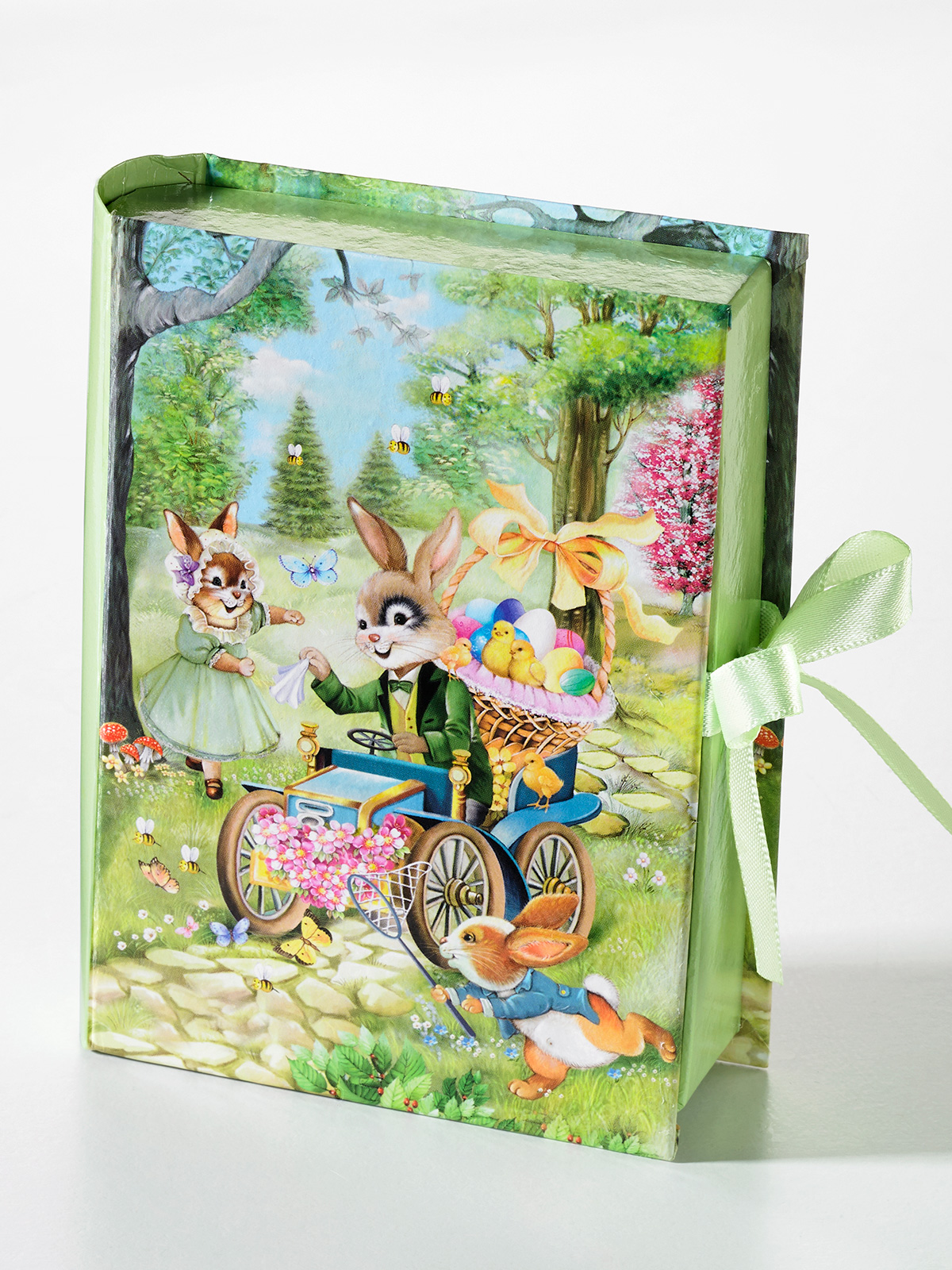 Für Notizen, Rezepte und andere Kleinigkeiten! Das hochwertige, kleine Büchlein aus Karton mit dekorativem Hasentaxi-Motiv ist köstlich gefüllt mit 50 g original Schweizer Alprose-Napolitains in den Geschmacksrichtungen Vollmilch, Zartbitter, Vollmilch-Nuss und Nougat. H/B/T: ca.13 x 10 x 3 cm.