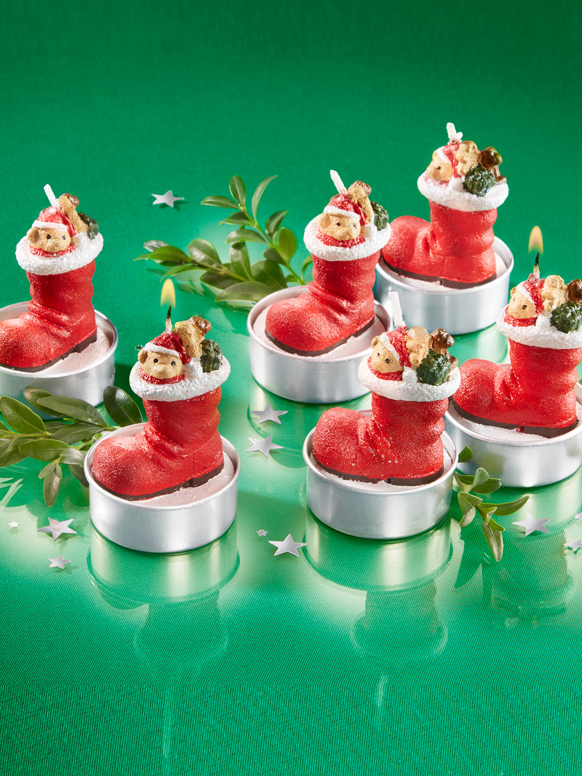 Ein schönes Detail für Ihre Weihnachtsdeko! Hochwertig gestaltete Teelichter in der Form eines entzückenden Weihnachtsstiefels. 6 Stück. Ø ca. 4 cm.