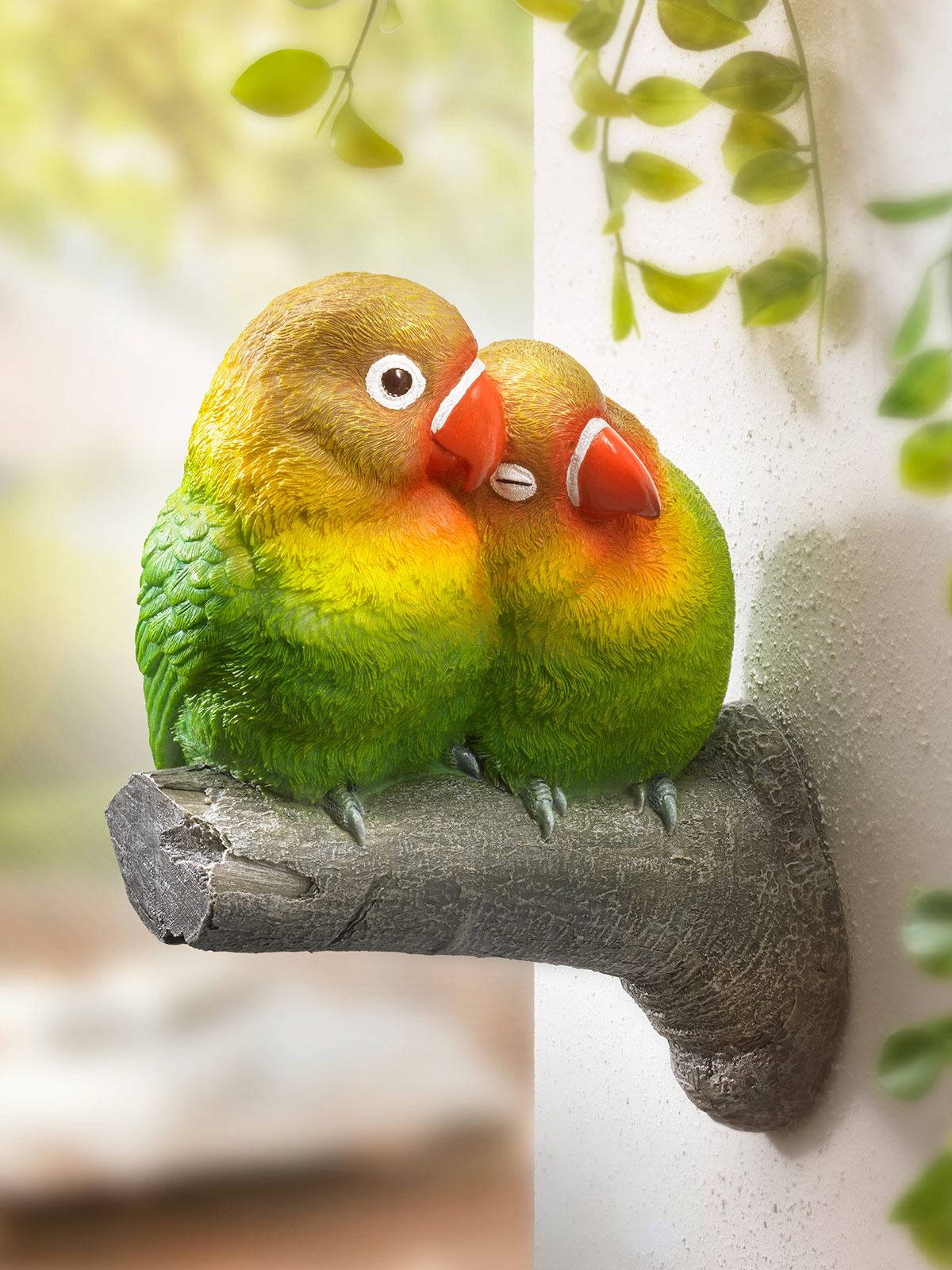 Ich hab Dich lieb! Wunderschöne Gartendeko für Wände oder Bäume. Die beiden Vögel auf dem Ast sind besonders possierlich und finden nicht nur bei Vogelliebhabern ihren Platz. Wetterfest, UV-beständig. Rückseitig mit Wandhalterung. Material: Polyresin. Ca. 15 x 19 cm.