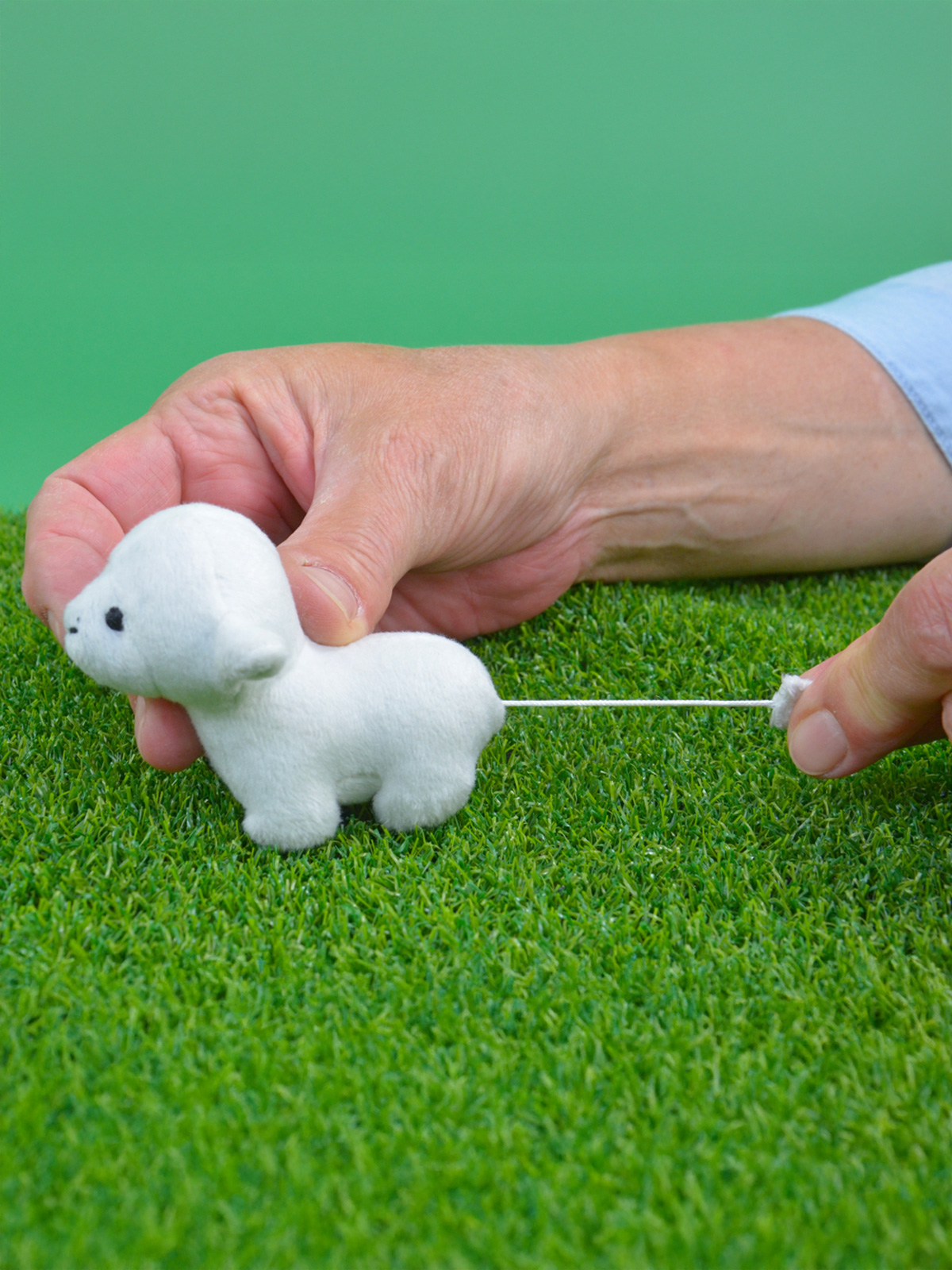 „Zieh mir am Schwänzchen und ich zappele.“ Das niedliche Schaf bringt nicht nur Kinderaugen zum Strahlen. Material: Plüsch. L/B/H ca. 8 x 5 x 6 cm.